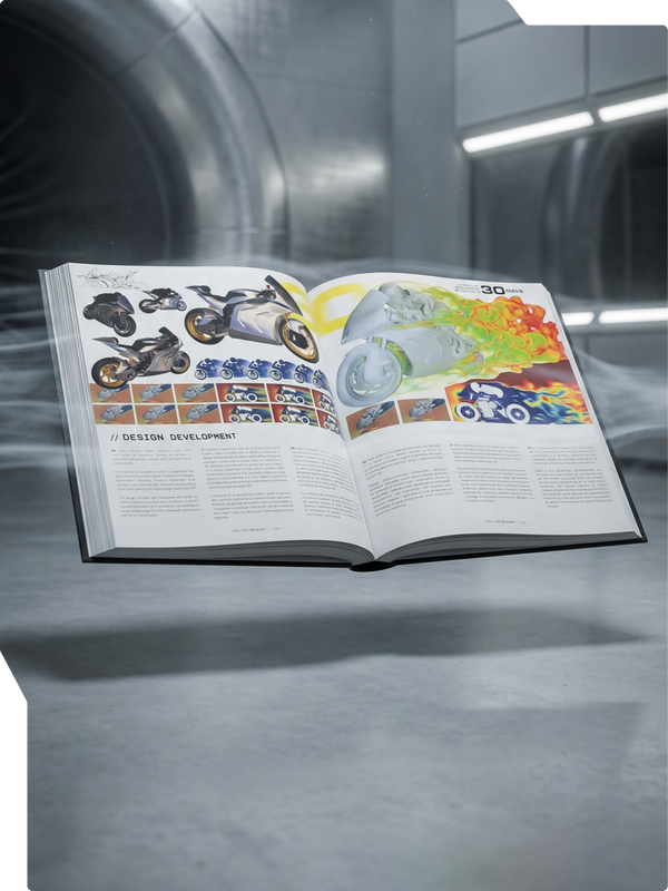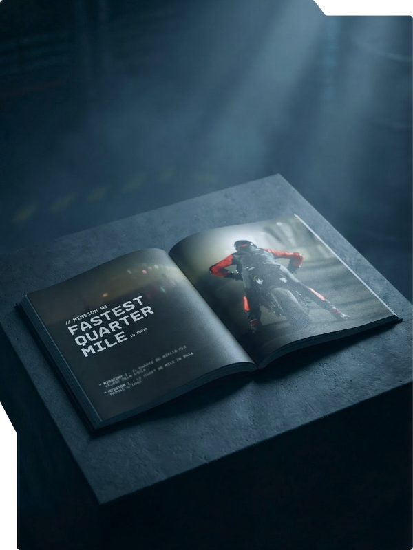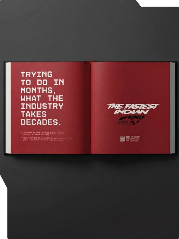 A deep-dive into the design & development of the record-breaking F99 - The Fastest Indian. A hard bound book, written in English, Hindi and French, in 160 gsm RSW paper that’s fully varnished, enclosed in a secure box with a magnetic lid to preserve this book through time. It also includes embedded videos to help you continue the story beyond print.